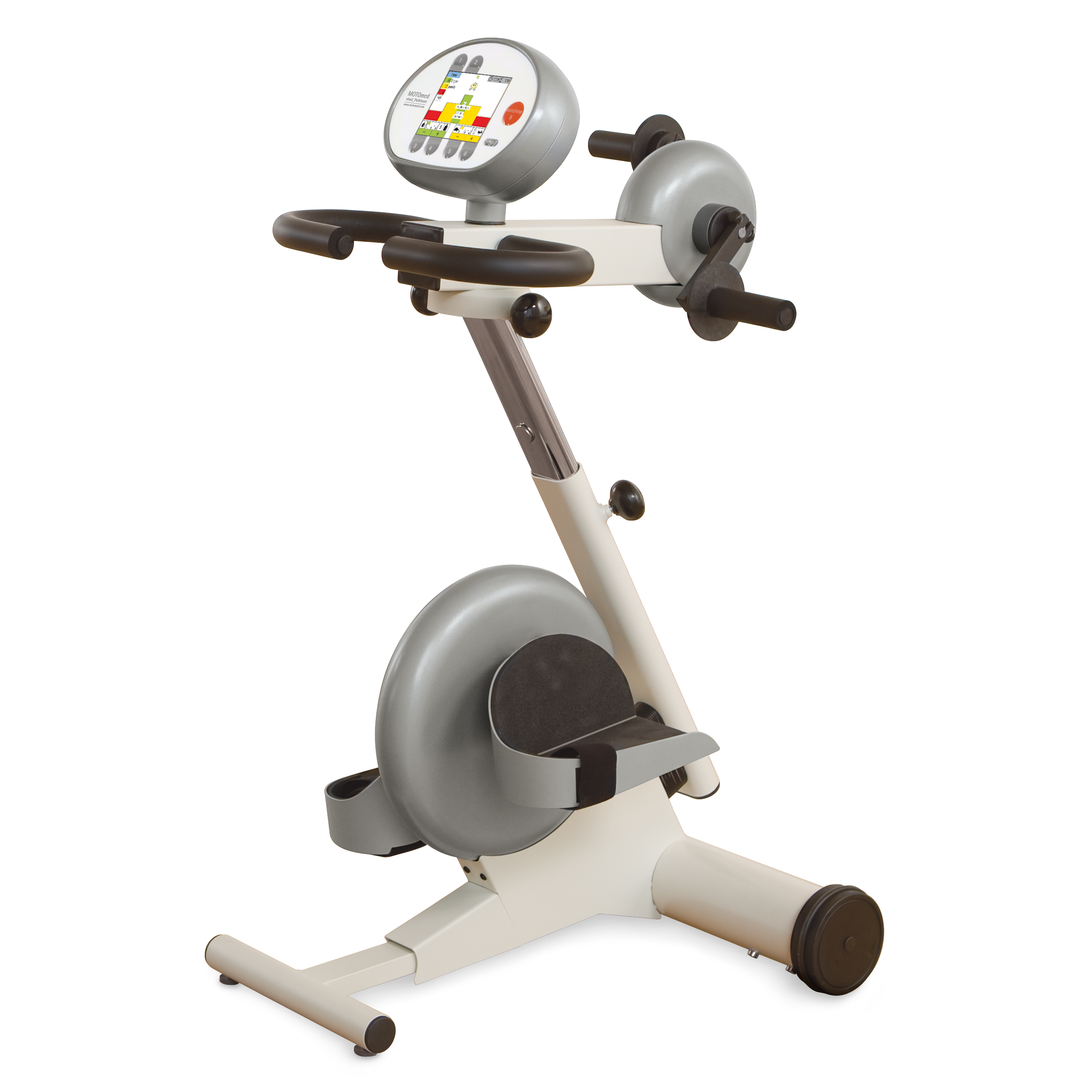 Regular movement therapy in combination with medication is the basis of recent Parkison’s therapy. The MOTOmed Viva2 Parkison has a software-controlled motor, which enables a movement training with high revolution speed. The user can either train passively or actively with own muscle strength.
