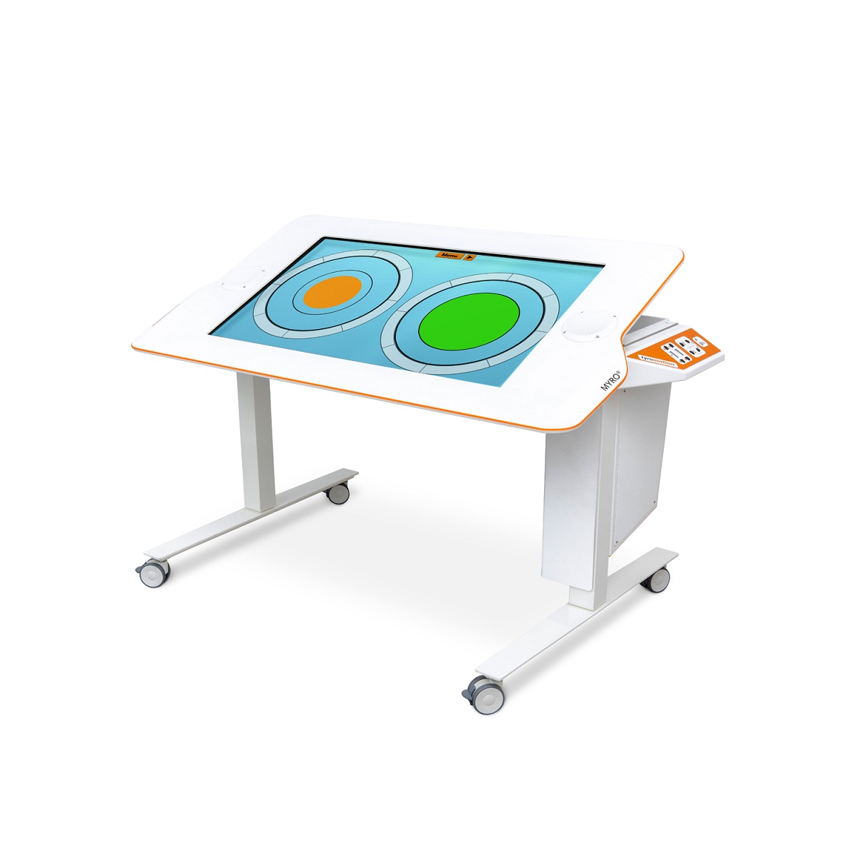 The interactive surface for a far-reaching therapy. MYRO is an interactive therapy surface which can be used in a multitude of ways: the MYRO sensors allow everyday life motor training with real objects on a responsive surface.